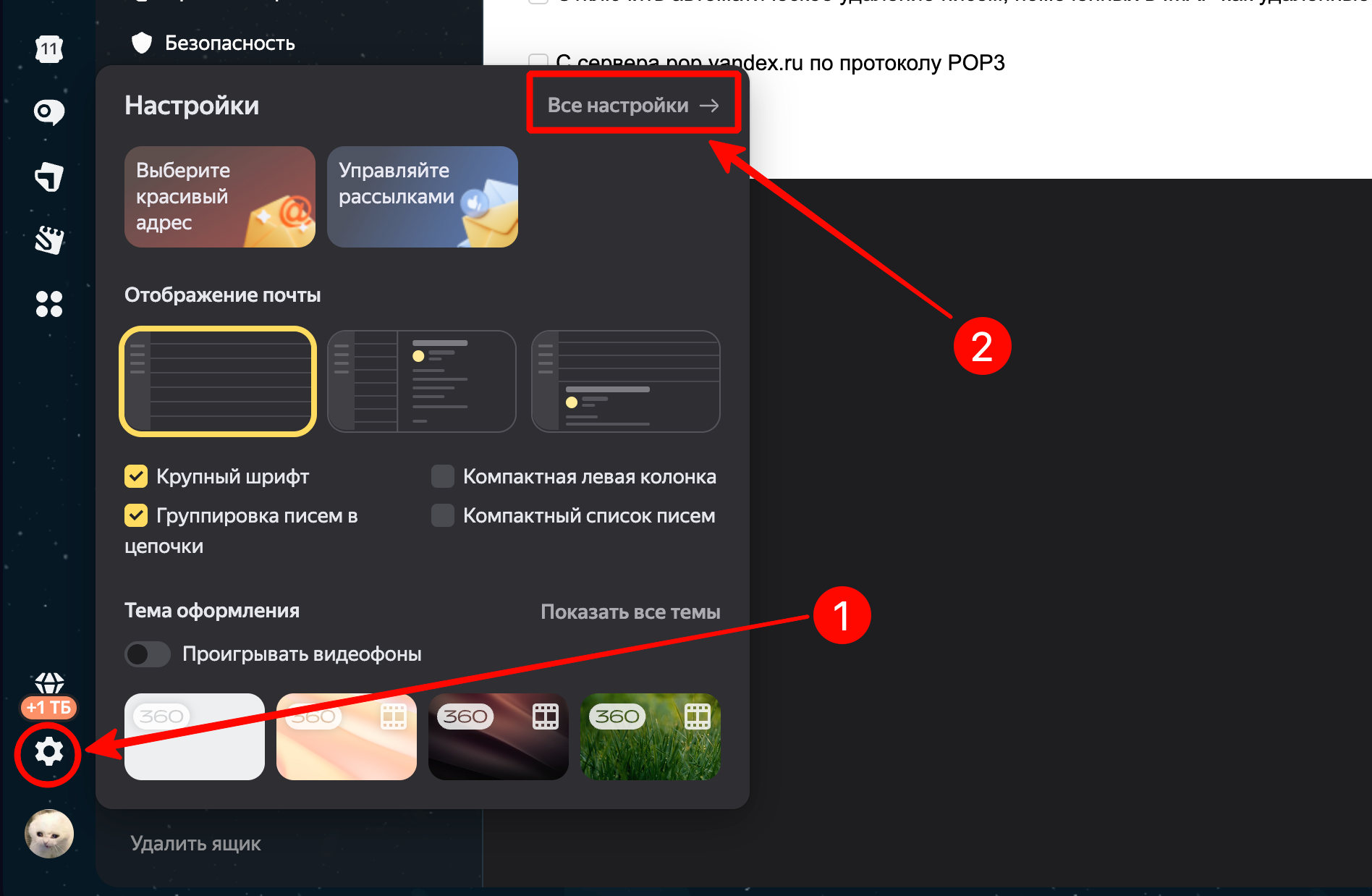 Шаг 3. Вводим полученные данные на странице «Настройка» - «Почта и подпись» - «Другое»