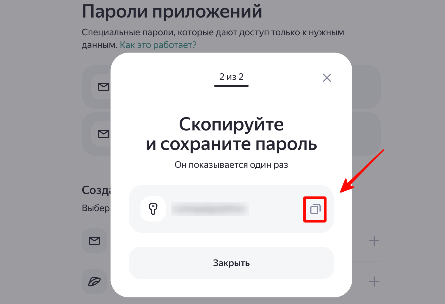 Создание пароля приложения: пароль готов